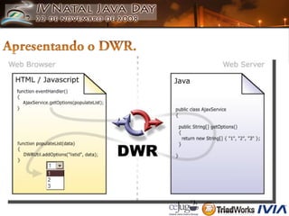 2) Apresenta o framework DWR, que permite comunicação assíncrona em Java de forma simples e robusta.