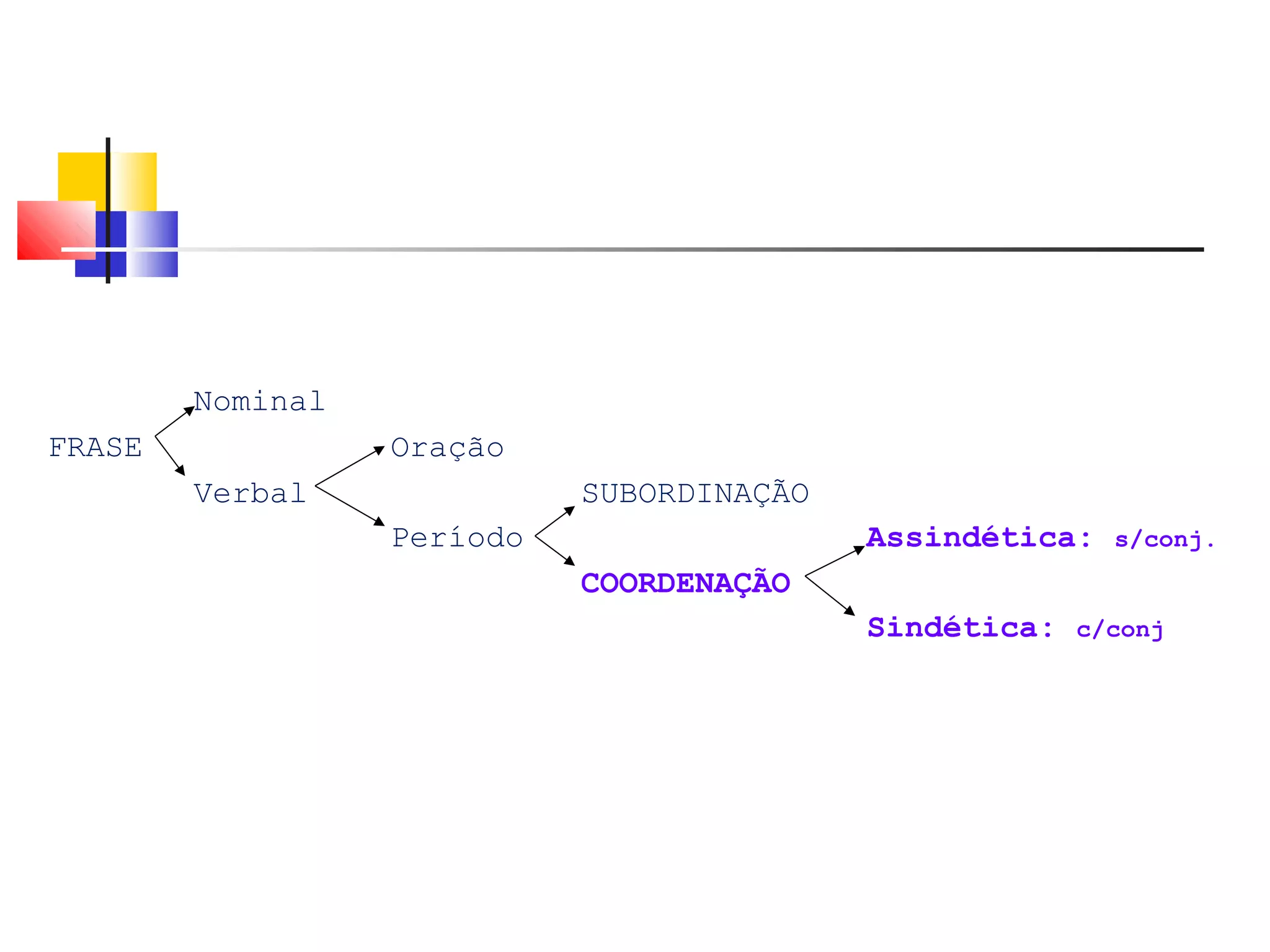 Este documento resume os tipos de orações, períodos e conjunções. Apresenta orações coordenadas e subordinadas, explicando suas classificações e funções. Fornece exemplos de orações subordinadas substantivas, adjetivas e adverbiais. Conclui com considerações finais sobre o objetivo do resumo facilitar o estudo e compreensão da matéria.