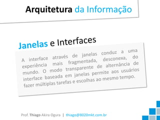 O documento é sobre Arquitetura da Informação e repete várias vezes o título e os detalhes do professor Thiago Akira Ogura e seu email.