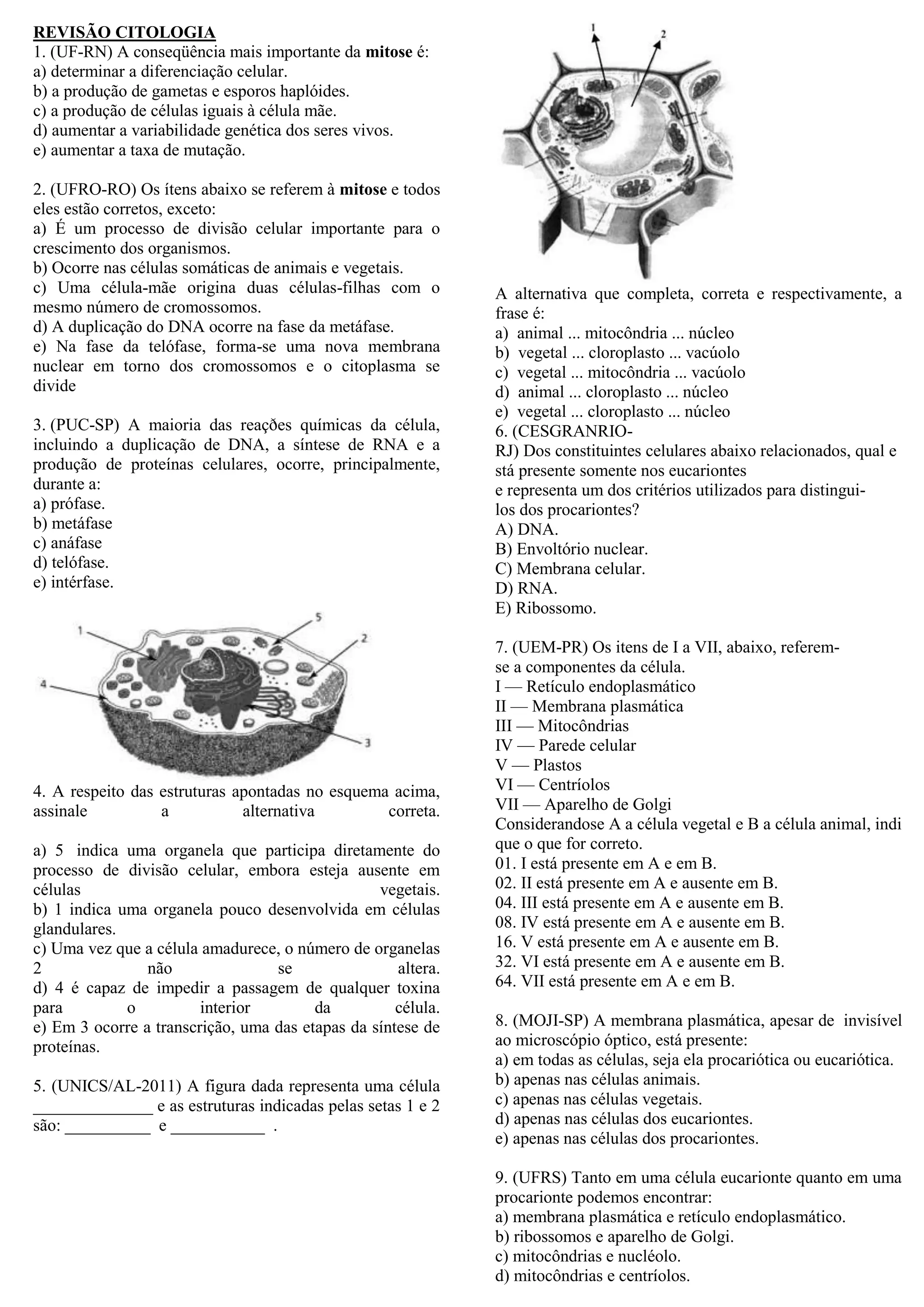 2) Todos os itens sobre a mitose estão corretos, exceto a duplicação do DNA ocorrer na metáfase.