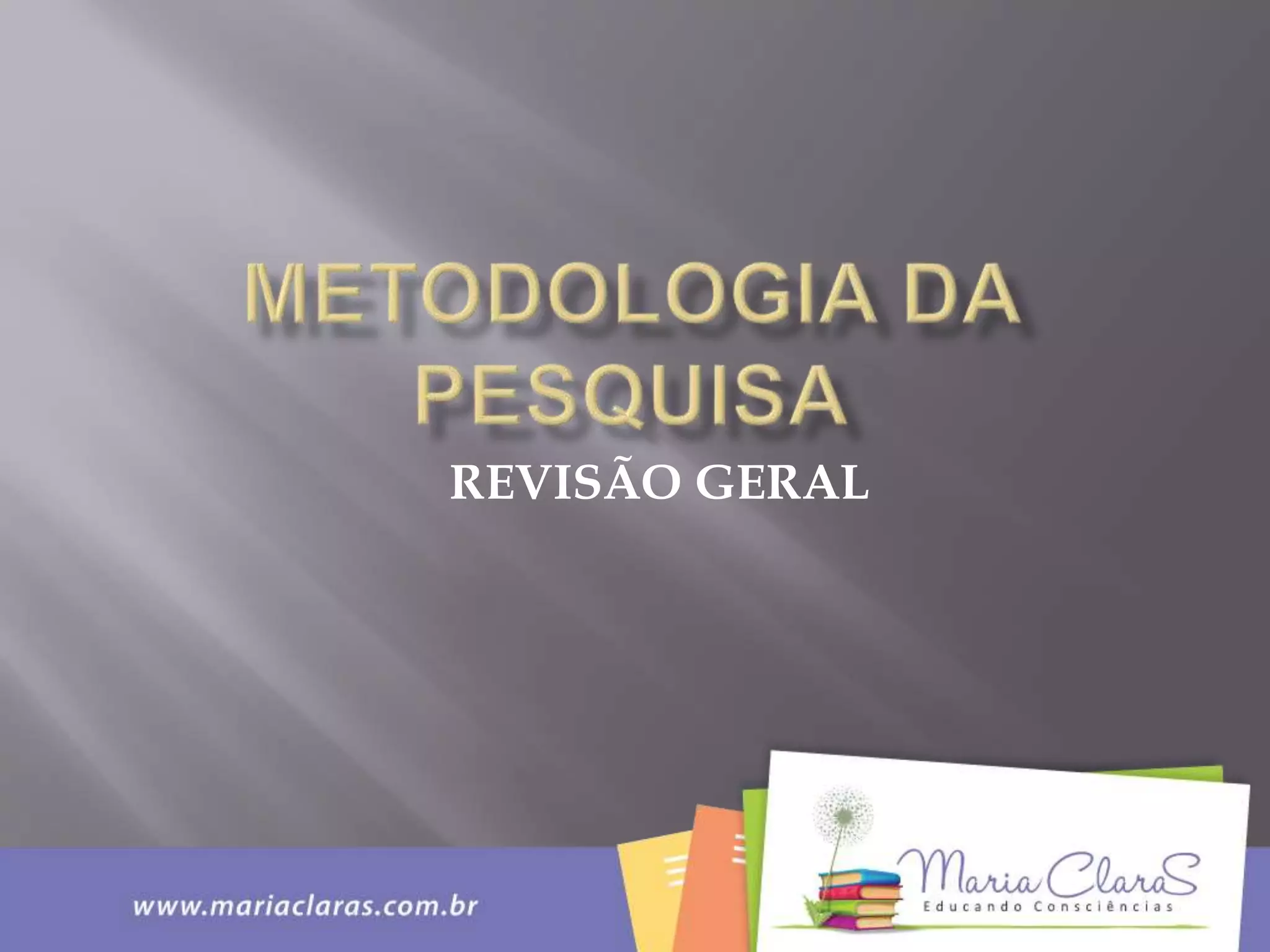 O documento discute vários tipos de conhecimento, incluindo ciência, senso comum, filosofia, religião e pesquisa. Apresenta as características de cada um e explica conceitos como teoria, pesquisa, metodologia e comunicação de resultados.