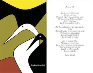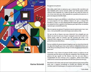 O documento contém três poemas curtos e aparentemente desconexos escritos por Nicola Gonzaga, seguidos por um breve texto em prosa da autoria de Carla Mello sobre aulas de sintaxe e insanidade temporária. O documento termina com um conto de Jones S. Custódio sobre um homem cansado que chega em casa e assiste TV até adormecer no sofá.