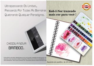 O documento discute técnicas de desenho com lápis aquarelável e a jornada de um fotógrafo autodidata, que começou sua carreira há aproximadamente 3 a 4 anos. O fotógrafo compartilha suas inspirações, abordagens sobre fotografia de ensaios e sua desejada versatilidade de trabalho. Ele recomenda que aspirantes a fotógrafos atuem com amor e dedicação, evitando a superficialidade comum na profissão.