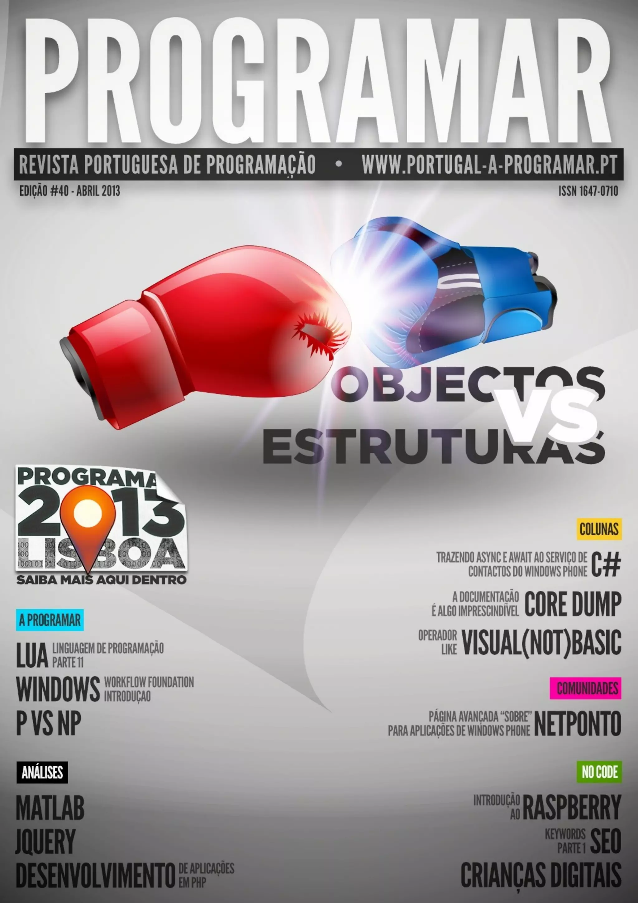 Este documento apresenta a edição de Abril da revista PROGRAMAR, que inclui artigos sobre tópicos de programação como Lua, Windows Workflow Foundation e o problema P vs NP. A edição é coordenada por António Santos e conta com a colaboração de vários membros da comunidade Portugal-a-Programar.