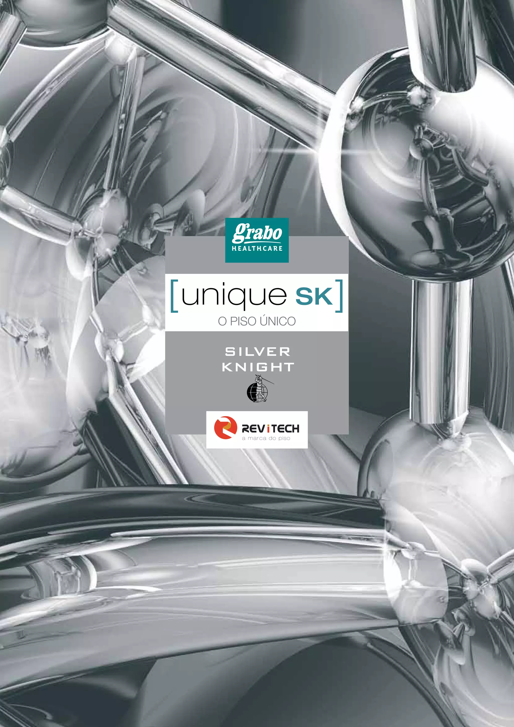 O documento descreve um piso chamado UNIQUE SK que possui propriedades autolimpantes e antimicrobianas graças a uma camada contendo nanopartículas de prata e dióxido de titânio. O piso é recomendado para áreas hospitalares por reduzir o risco de infecções e facilitar a limpeza.