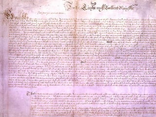 A Revolução Inglesa levou à implantação do parlamentarismo na Inglaterra através de 3 eventos-chave: 1) A Guerra Civil Inglesa entre monarquistas e puritanos resultou na execução do rei Carlos I; 2) Sob Oliver Cromwell, uma república puritana governou até 1660; 3) A Revolução Gloriosa de 1688 estabeleceu a monarquia constitucional com o Parlamento no poder, não o rei.