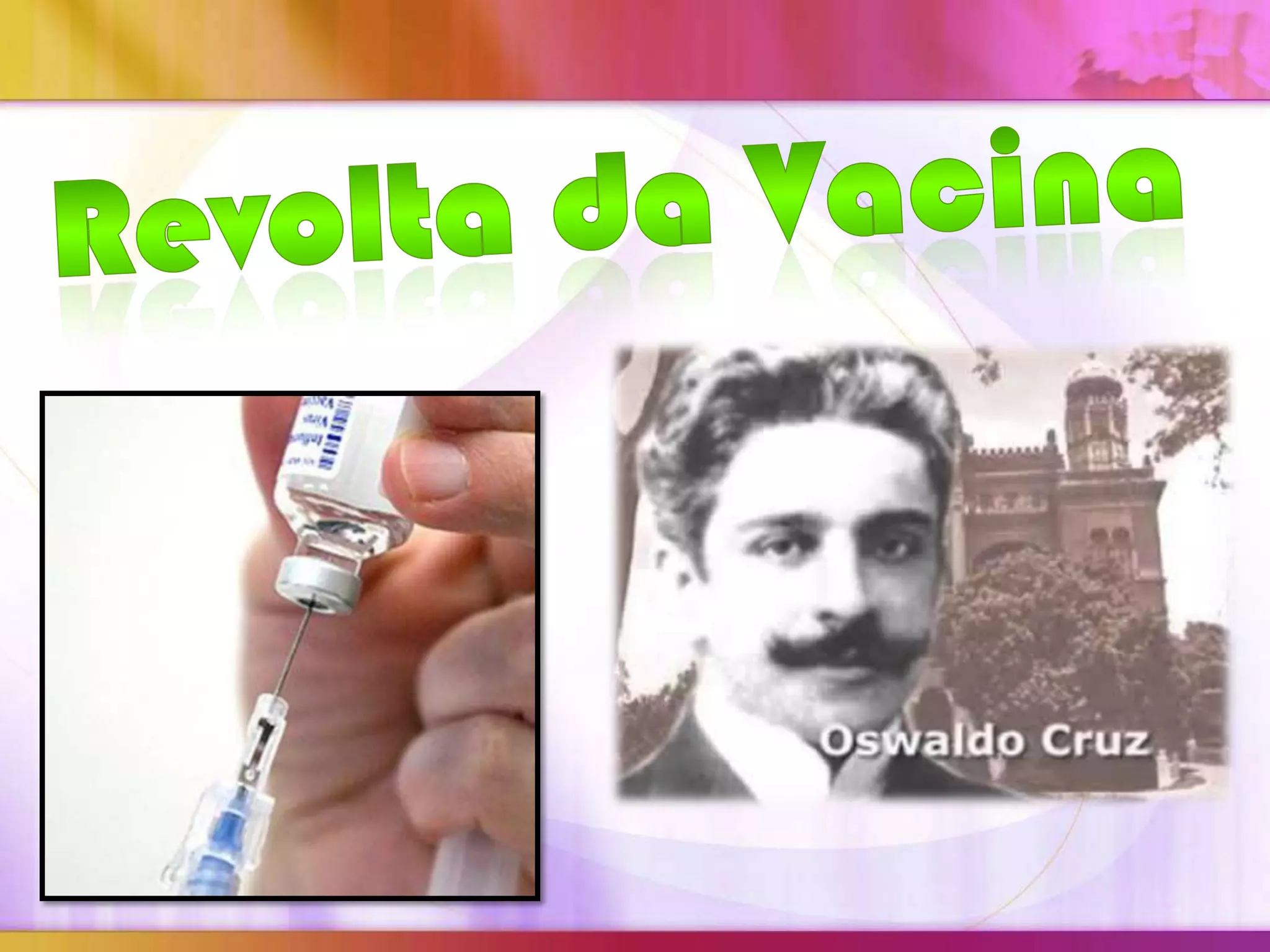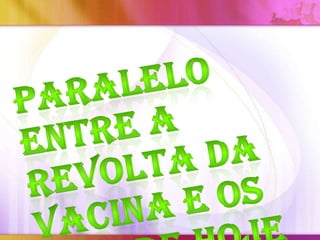 O documento descreve a Revolta da Vacina no Rio de Janeiro em 1904. Uma campanha de vacinação obrigatória foi implementada para combater epidemias, porém foi aplicada de forma violenta e autoritária, invadindo casas e vacinando pessoas à força. Isso, somado à crise econômica e reforma urbana, levou à revolta popular contra a vacinação compulsória.