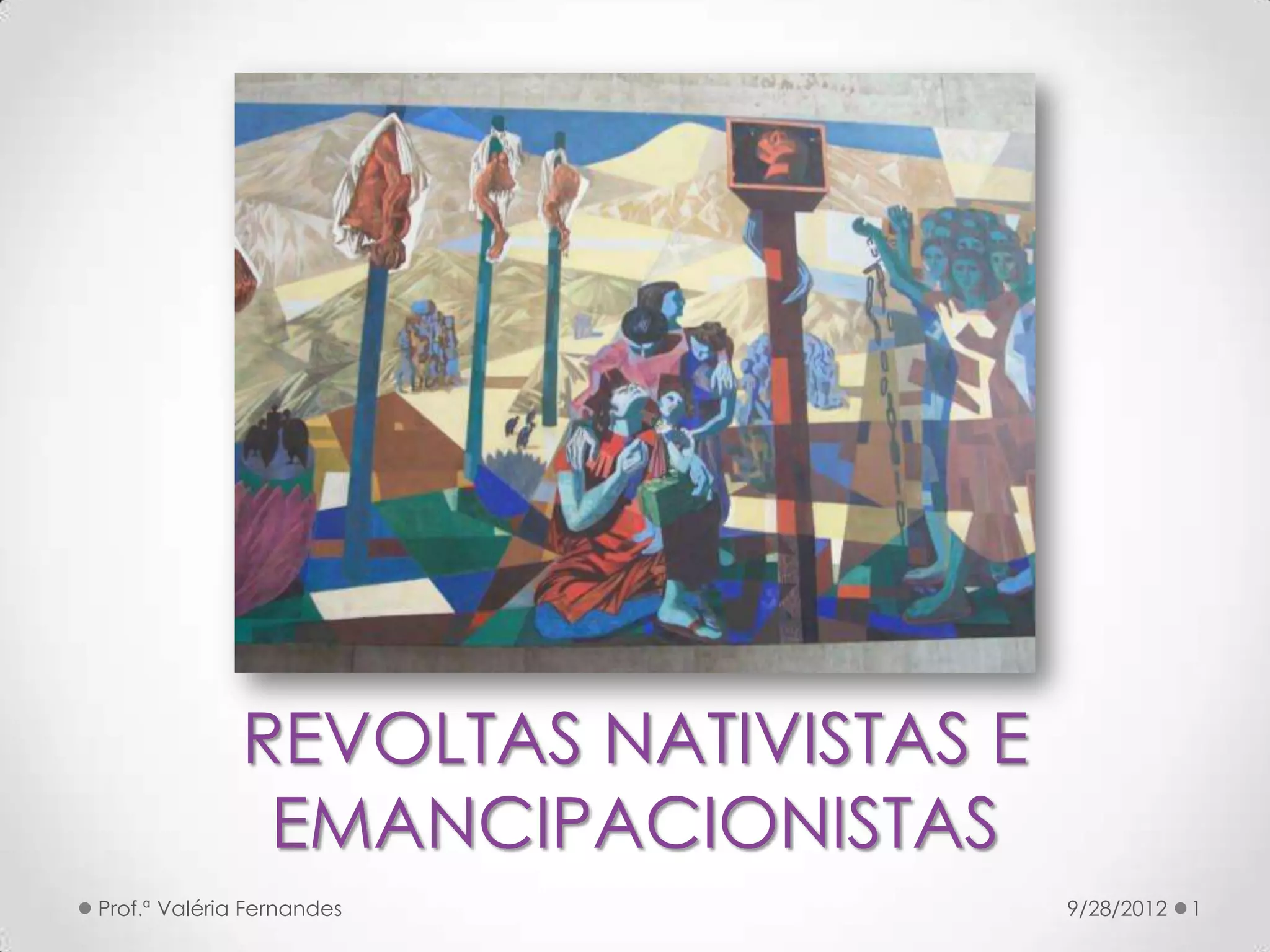 O documento aborda revoltas nativistas e movimentos emancipacionistas que ocorreram no Brasil entre os séculos XVII e XIX, destacando suas causas e consequências. Exemplos como a Revolta dos Beckman e a Conjuração Mineira ilustram a insatisfação com a coroa portuguesa, enquanto movimentos como a Revolução Pernambucana refletem o desejo de autonomia. As revoltas são atribuídas a pressões sociais, econômicas e influências de ideias iluministas.