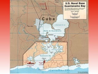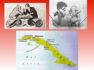 O documento descreve a história das relações entre Cuba e os Estados Unidos desde o século XIX até o triunfo da Revolução Cubana em 1959, marcada por interesses econômicos e políticos dos EUA na ilha e tentativas de anexação do território cubano. A independência de Cuba em 1902 ocorreu sob forte influência norte-americana através da Emenda Platt. A Revolução de 1959 pôs fim ao domínio dos EUA sobre a economia cubana e levou ao endurecimento do bloqueio econômico imposto