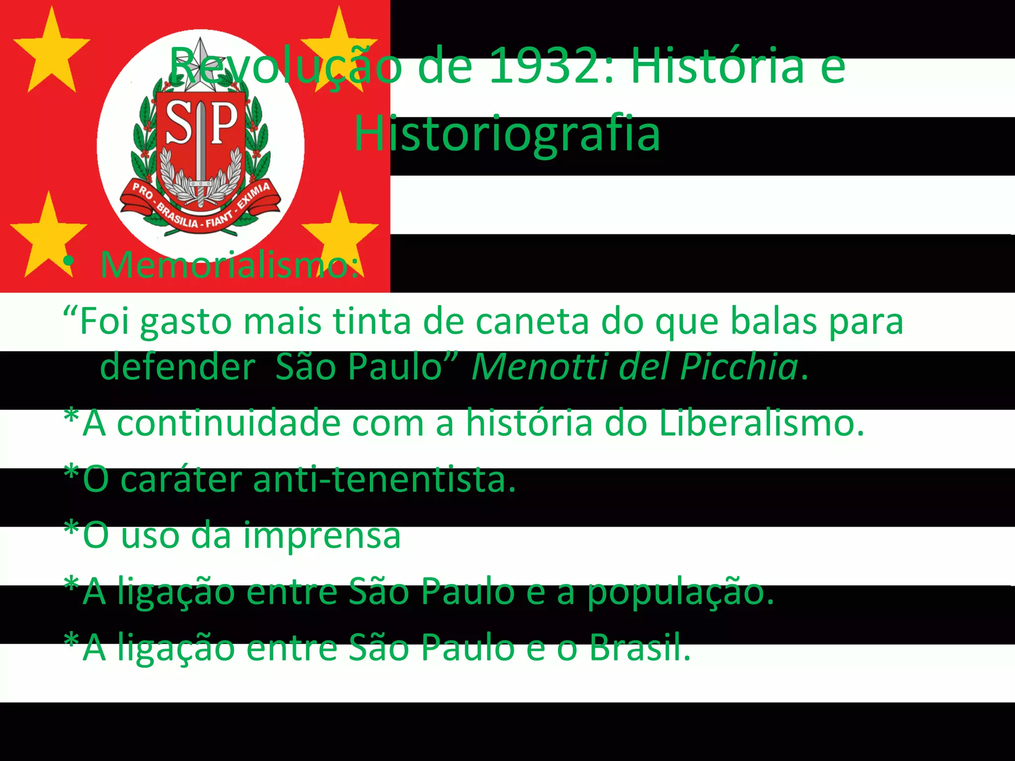 O documento discute a Revolução de 1932 em São Paulo, Brasil, cobrindo tópicos como a visão do memorialismo versus a versão oficial do Estado Novo, o apoio da Igreja, organizações femininas e instituições comerciais à revolução, e a disputa entre elites por apoio popular.