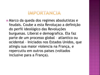 1) A Revolução Francesa ocorreu devido à crise financeira da França, à fome generalizada e ao descontentamento do Terceiro Estado com os privilégios da nobreza e do clero.