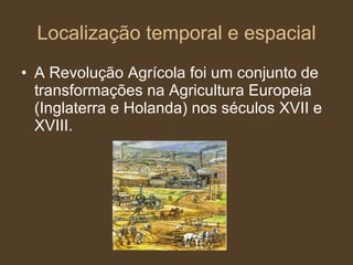 O documento descreve as principais transformações da Revolução Agrícola e Industrial na Europa entre os séculos XVII e XIX, incluindo novas técnicas agrícolas, crescimento populacional, êxodo rural, crescimento urbano, setores iniciais da revolução industrial, e os impactos sociais e econômicos destas mudanças. O documento também discute o atraso da industrialização em Portugal em comparação aos outros países europeus.