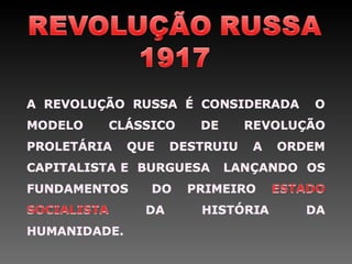 No século XIX, a Rússia era atrasada economicamente em relação às potências europeias ocidentais, tendo uma economia baseada na agricultura. O país era governado de forma absolutista pelo Czar Nicolau II, enquanto crescia a insatisfação popular com a desigualdade social e a ausência de liberdades políticas. Partidos de oposição como os bolcheviques e mencheviques surgiram de forma clandestina defendendo mudanças no sistema, culminando na Revolução de Fevereiro de 1917 que derrubou o regime czarista.