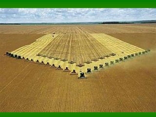 A Revolução Verde trouxe avanços tecnológicos para a agricultura nas décadas de 1960 e 1970, porém também trouxe consequências negativas como degradação ambiental, concentração fundiária e dependência de insumos. Apesar dos aumentos na produção, a fome continua alta no mundo e no Brasil. A agroecologia surgiu como alternativa mais sustentável à Revolução Verde.