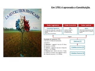 2) Em 1791, foi aprovada a Constituição francesa. No entanto, a violência continuou nas ruas.