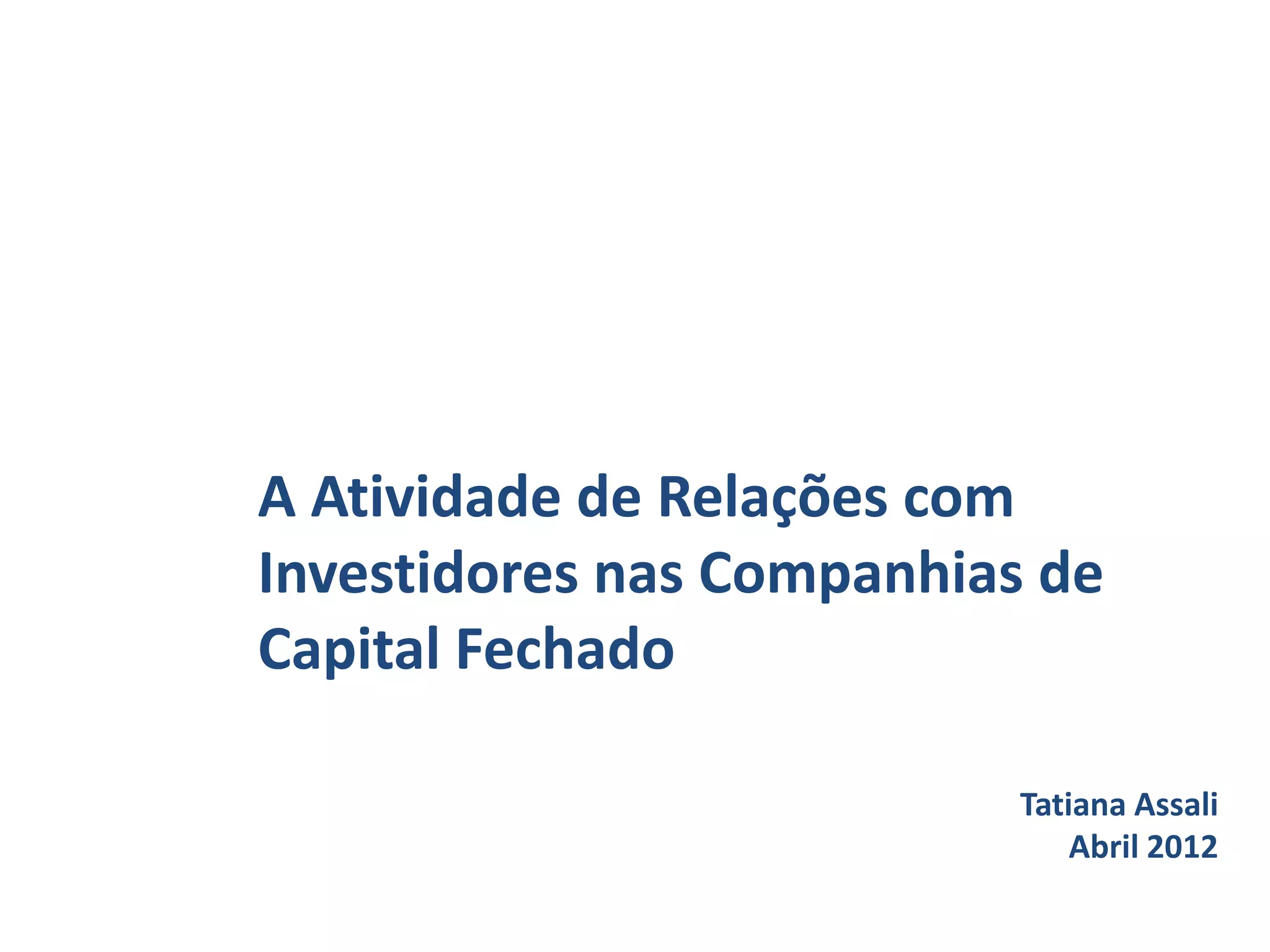 O documento discute como as atividades de relações com investidores podem ajudar companhias de capital fechado a atrair investidores. Ele explica que o RI pode montar uma base de dados padronizada, facilitar a apresentação dessas informações ao mercado, e manter a transparência dos dados financeiros e operacionais após a entrada de investidores. Isso beneficia tanto as empresas, que conseguem melhores apresentações, quanto os investidores, que recebem informações de qualidade.