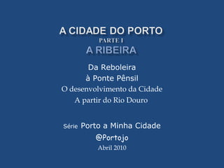 1) O documento descreve a história do desenvolvimento da zona ribeirinha do Porto ao longo dos séculos, desde vestígios romanos até construções do século XVIII.