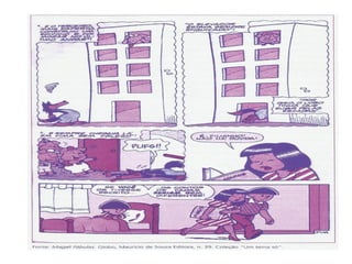 O documento discute a intertextualidade na Linguística Textual, definindo-a como as relações entre um texto e outros textos prévios. Apresenta duas formas de intertextualidade: explícita, quando há citação da fonte; e implícita, quando o leitor deve reconhecer a fonte sem citação. Exemplifica modos como a intertextualidade constrói significados em textos.