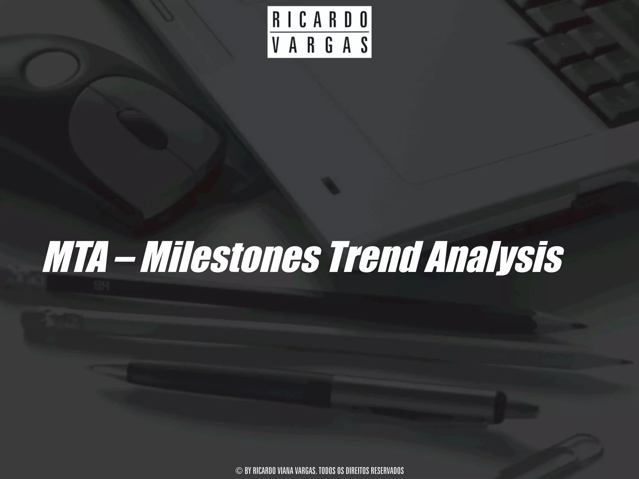 O documento descreve a ferramenta MTA (Milestones Trend Analysis), que analisa a evolução dos marcos de um projeto através de um gráfico. O MTA representa os marcos por cores ou símbolos e analisa padrões como linhas normais, crescentes, com mudança de tendência, divergentes, decrescentes ou em zig zag para identificar desvios no cronograma. O documento também menciona um programa para aplicar o MTA e finaliza promovendo outros conteúdos sobre gerenciamento de projetos do autor.