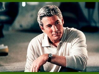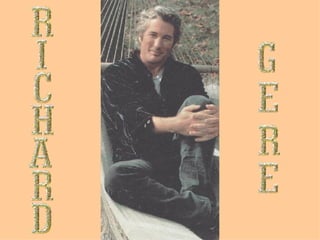 O documento é sobre Richard Gere e contém sua foto, uma música de Roy Orbison chamada "Pretty Woman" e foi formatado por Sonia Barboza.