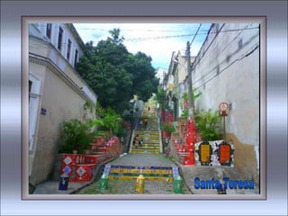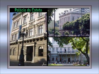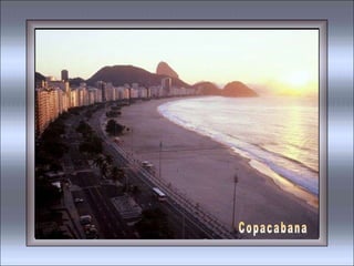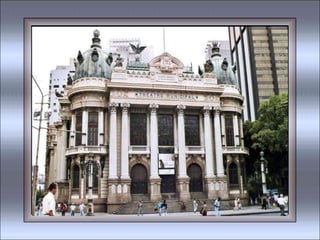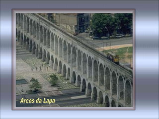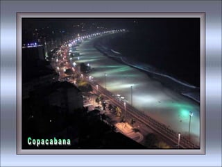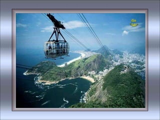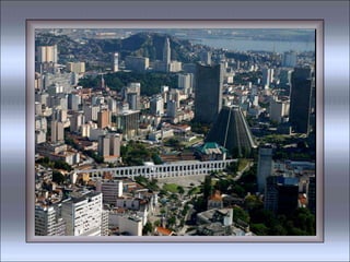 O documento contém trechos de várias músicas que celebram a cidade do Rio de Janeiro, descrevendo aspectos como suas praias, bairros, paisagens naturais, cultura e clima de alegria. As músicas exaltam a beleza do Rio de Janeiro, referindo-se à cidade como "Cidade Maravilhosa" e "Coração do Brasil".