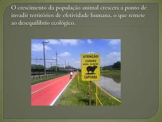 O documento discute vários animais que vivem em ambientes agressivos com dejetos, incluindo jacarés, capivaras, ratão do banhado e mosquitos, e explica como esses ambientes levam à morte e deterioração fisiológica se não houver condições de vida razoáveis. Também menciona a importância de respeitar políticas de convivência básica.