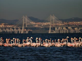 O documento descreve a jornada do Rio Tejo desde sua nascente na Espanha até sua foz no Oceano Atlântico, passando por várias cidades portuguesas. Detalha pontos ao longo do curso do rio como Vila Velha de Ródão, Abrantes, Constância e Santarém, antes de chegar a Lisboa, onde é atravessado por diversas pontes antes de desaguar no oceano.