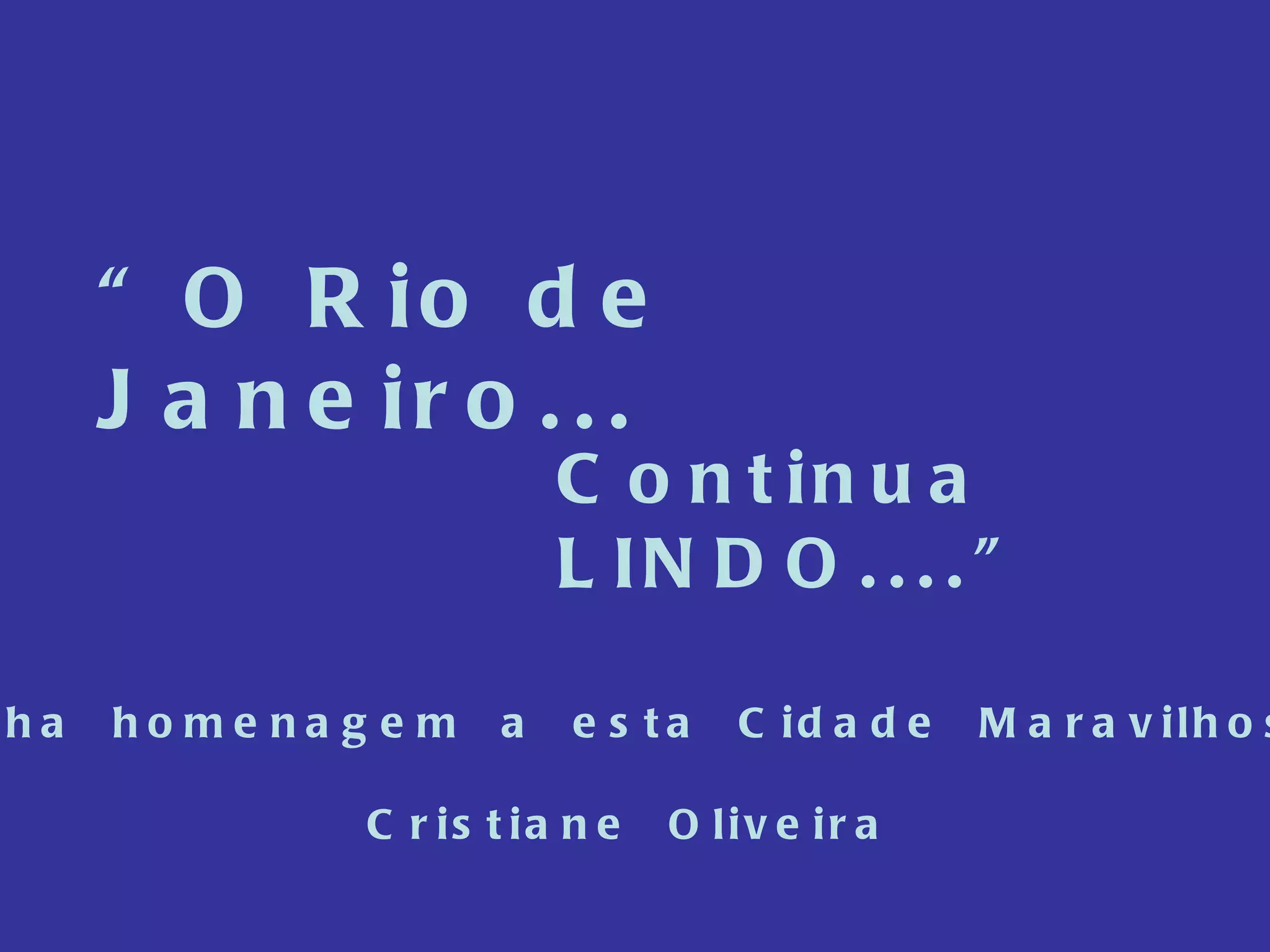 O documento é uma homenagem à cidade do Rio de Janeiro, destacando suas belezas naturais como praias e o Cristo Redentor, mas também reconhecendo os desafios atuais da violência. No entanto, expressa esperança de que, com fé e garra do povo carioca, a cidade volte a ser reconhecida pela alegria, samba e futebol.
