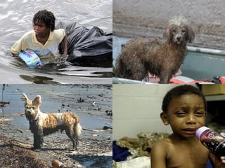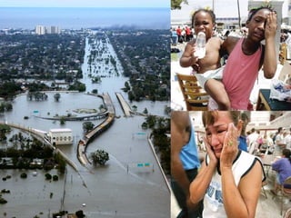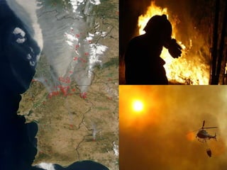 3) São descritos exemplos de catástrofes naturais como enchentes, incêndios florestais, terremotos e furacões, assim como catástrofes tecnol