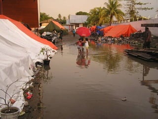 1) O documento discute os riscos e catástrofes naturais e tecnológicas e como elas afetaram a evolução humana ao longo do tempo.