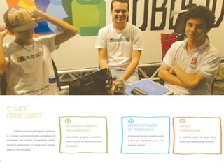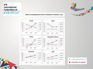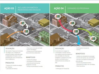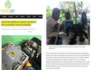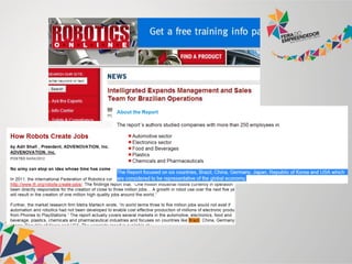 O documento aborda o impacto do mercado de robôs industriais, destacando um aumento de 7% nas vendas na América, especialmente no setor automotivo brasileiro. Também discute a importância da robótica na educação, propondo um modelo colaborativo e o uso de lixo eletrônico para formação de engenheiros. O C.E.S.A.R. é mencionado como um centro de inovação que visa transferir conhecimento em tecnologia da informação para a sociedade.