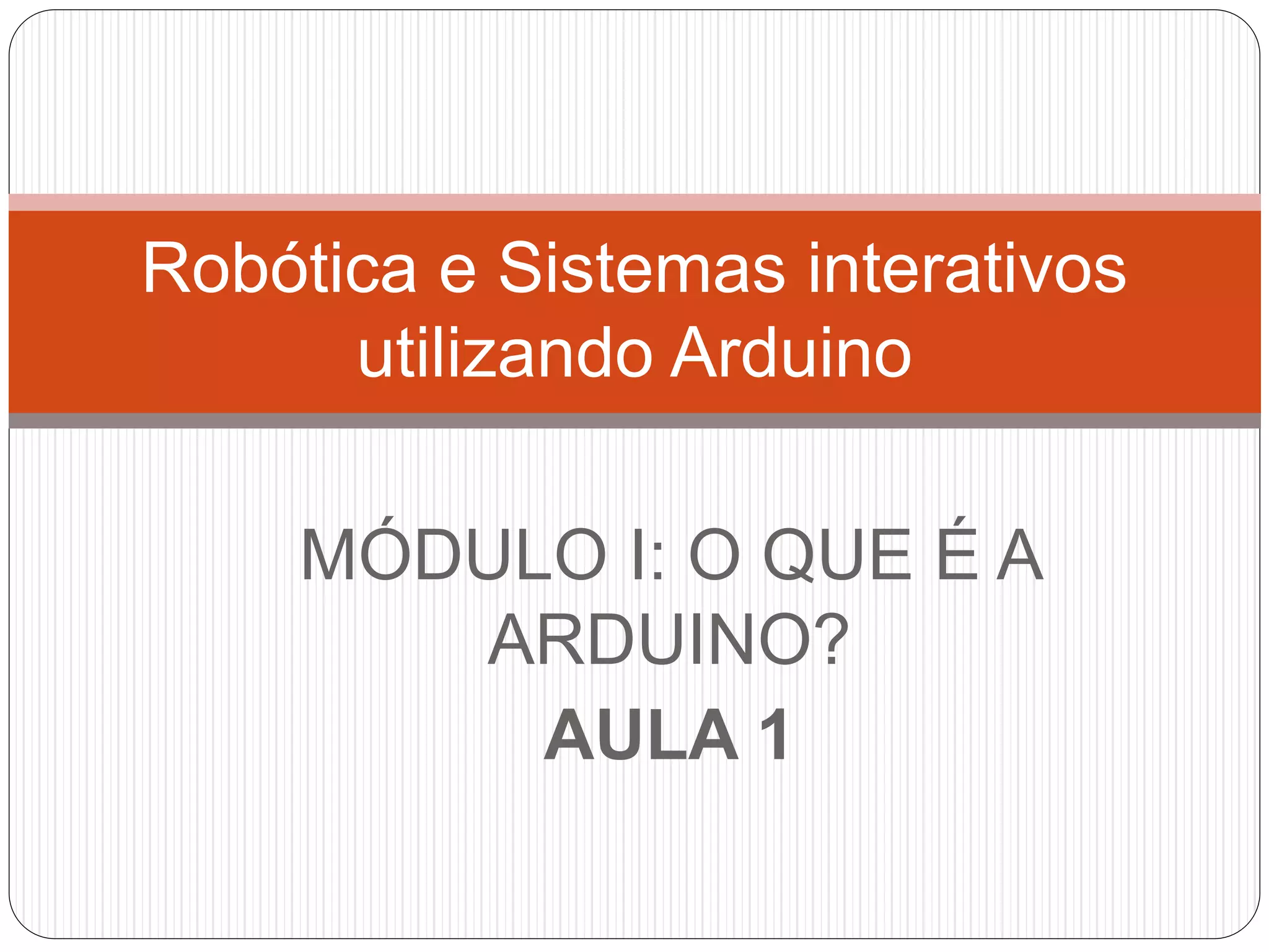 O documento introduz o Arduino, descrevendo que é uma plataforma para prototipagem de circuitos eletrônicos utilizando microcontroladores Atmel AVR. Também apresenta os principais tipos de placas Arduino, como a Arduino UNO, e explica conceitos básicos como programação, linguagem C++ e as funções setup() e loop() necessárias em programas para Arduino.