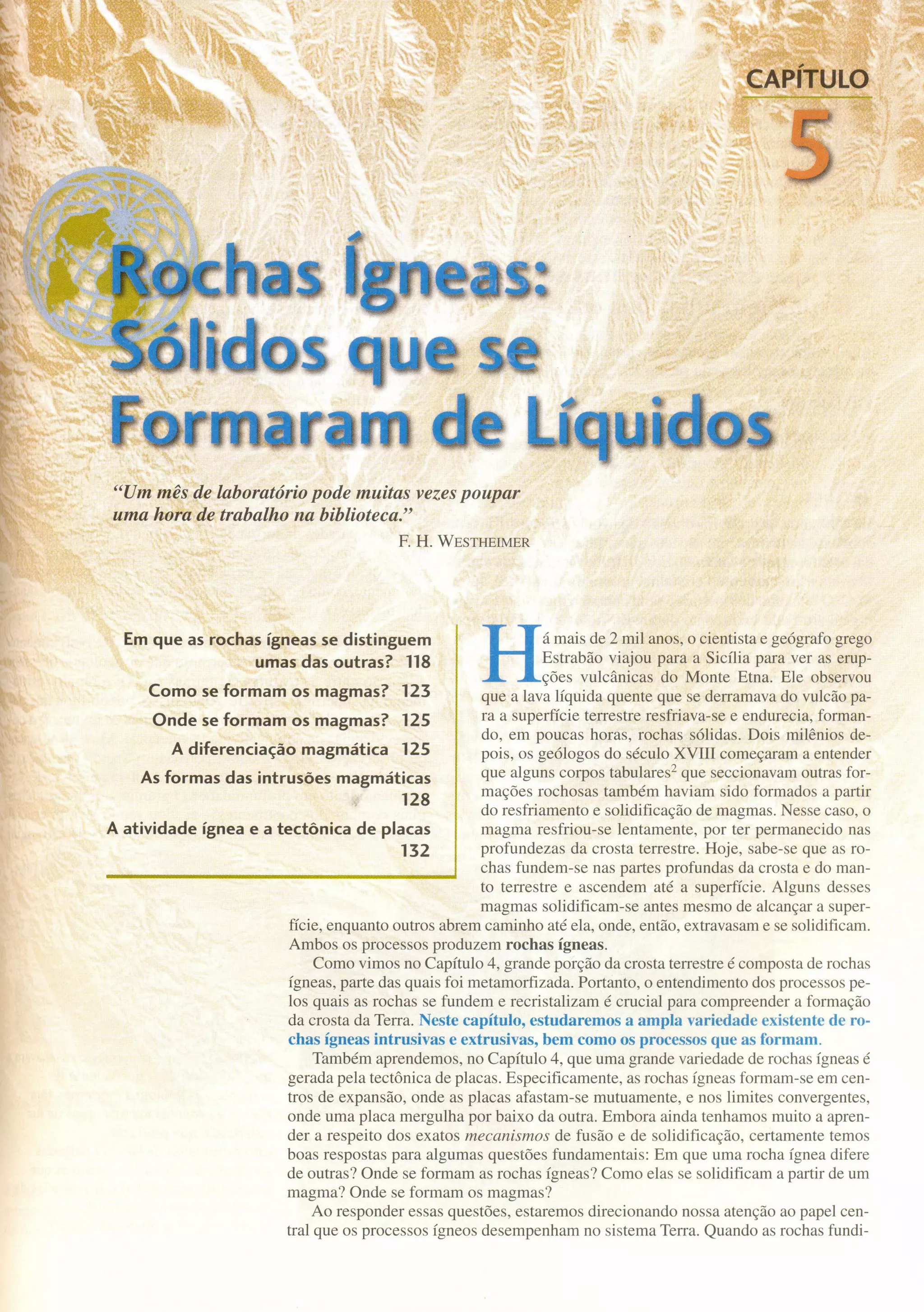 O documento discute a classificação das rochas ígneas com base em sua textura e composição. Rochas ígneas intrusivas como o granito apresentam textura cristalina grossa devido ao resfriamento lento em profundidades, enquanto rochas extrusivas como o basalto apresentam textura fina por resfriamento rápido na superfície.