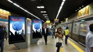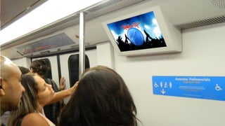 O documento descreve um projeto para promover marcas no Rock in Rio através de publicidade no metrô e VLT do Rio de Janeiro. O projeto oferece pacotes publicitários digitais e estáticos nos transportes com alcance de 2,8 milhões de pessoas diariamente, permitindo segmentação geográfica para promover marcas junto ao público do festival.