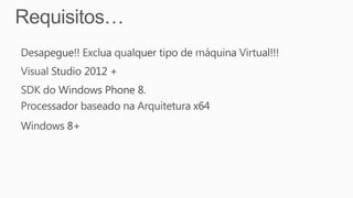 Palestra sobre Desenvolvimento e Conceitos para o sistema mobile Windows Phone 8
