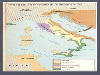 Roma foi fundada em 753 a.C. por Rômulo e Remo e passou por diferentes períodos: Monarquia, República e Império. Durante a República (509-31 a.C.), Roma expandiu seu território através das Guerras Púnicas e enfrentou crises internas. A queda da República levou ao Império (31 a.C.-476 d.C.), que prosperou sob Augusto, entrando em declínio no Baixo Império, culminando na queda do Império Romano do Ocident