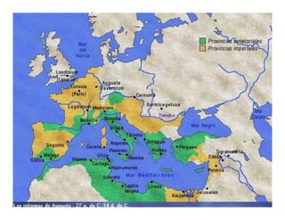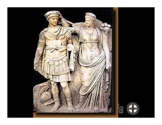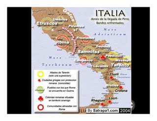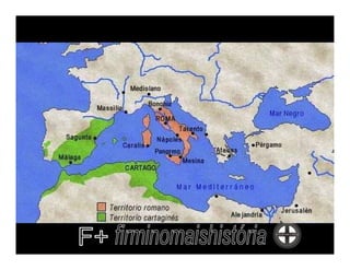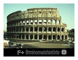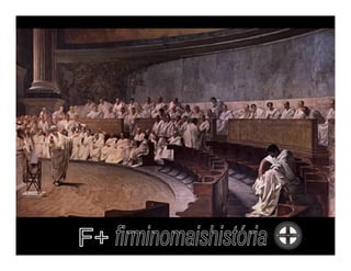 O documento resume a história de Roma desde sua fundação até a queda do Império Romano Ocidental. Começa com a Monarquia, passa pela República e chega ao Império, dividido em Alto e Baixo Império. Detalha as origens lendárias e históricas de Roma, sua expansão geográfica, estrutura política e sociedade dividida em classes.
