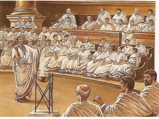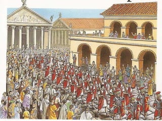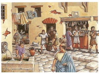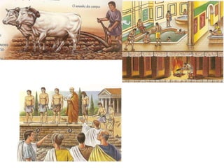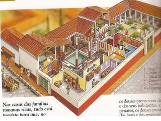 A sociedade romana dividia-se em grupos privilegiados e não privilegiados. Os grupos privilegiados incluíam senadores, cavaleiros e notáveis, enquanto os grupos não privilegiados eram compostos por plebeus, escravos e libertos. O Imperador detinha amplos poderes militares, políticos e religiosos, dirigindo o Estado e o exército e sendo o supremo sacerdote.