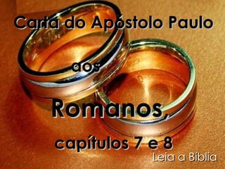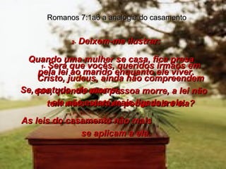 1) O capítulo discute como os cristãos não estão mais sob a lei judaica, mas sob a graça de Cristo, ilustrado pela analogia de um casamento.