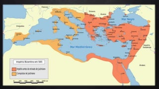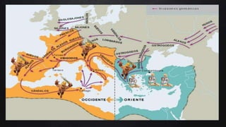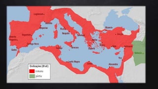 1) O documento descreve a história do Império Romano desde sua fundação por Rômulo em 750 a.C. até seu declínio no século V d.C.