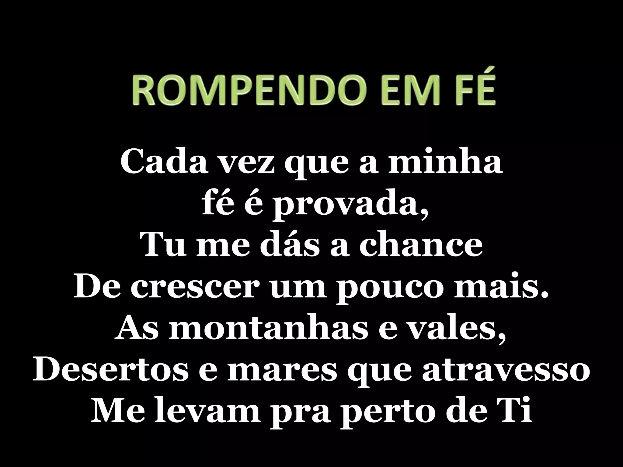 A música fala sobre como a fé do cantor é testada, mas que essas provações o levam mais perto de Deus e o fazem crescer. Apesar das dificuldades, sua fé é maior que qualquer problema e o permite continuar em frente, confiando que Deus o fará atravessar mares e montanhas. Sua vida se revestirá do poder divino à medida que rompe em fé de forma ousada.