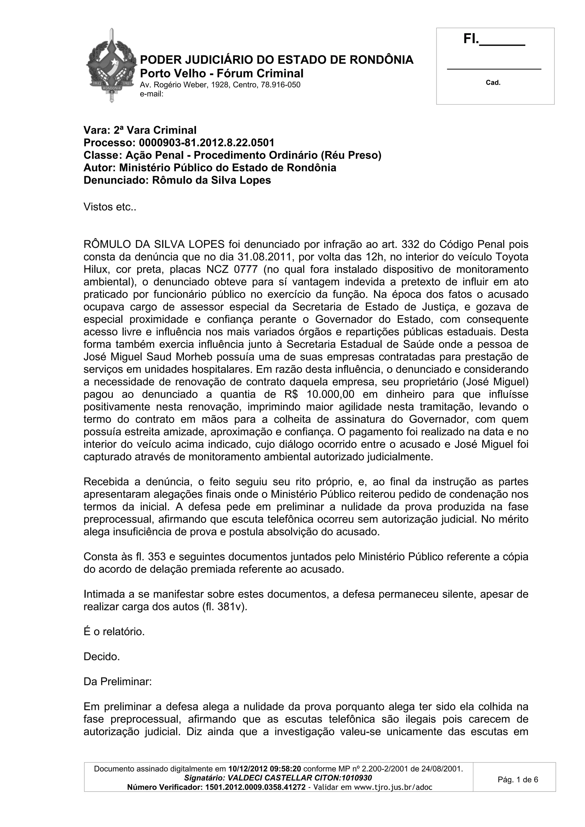 3) A justiça considera plausível a confissão de Rômulo em delação premiada e vê indícios de sua culpa em depoimentos de testemunhas e em relatório