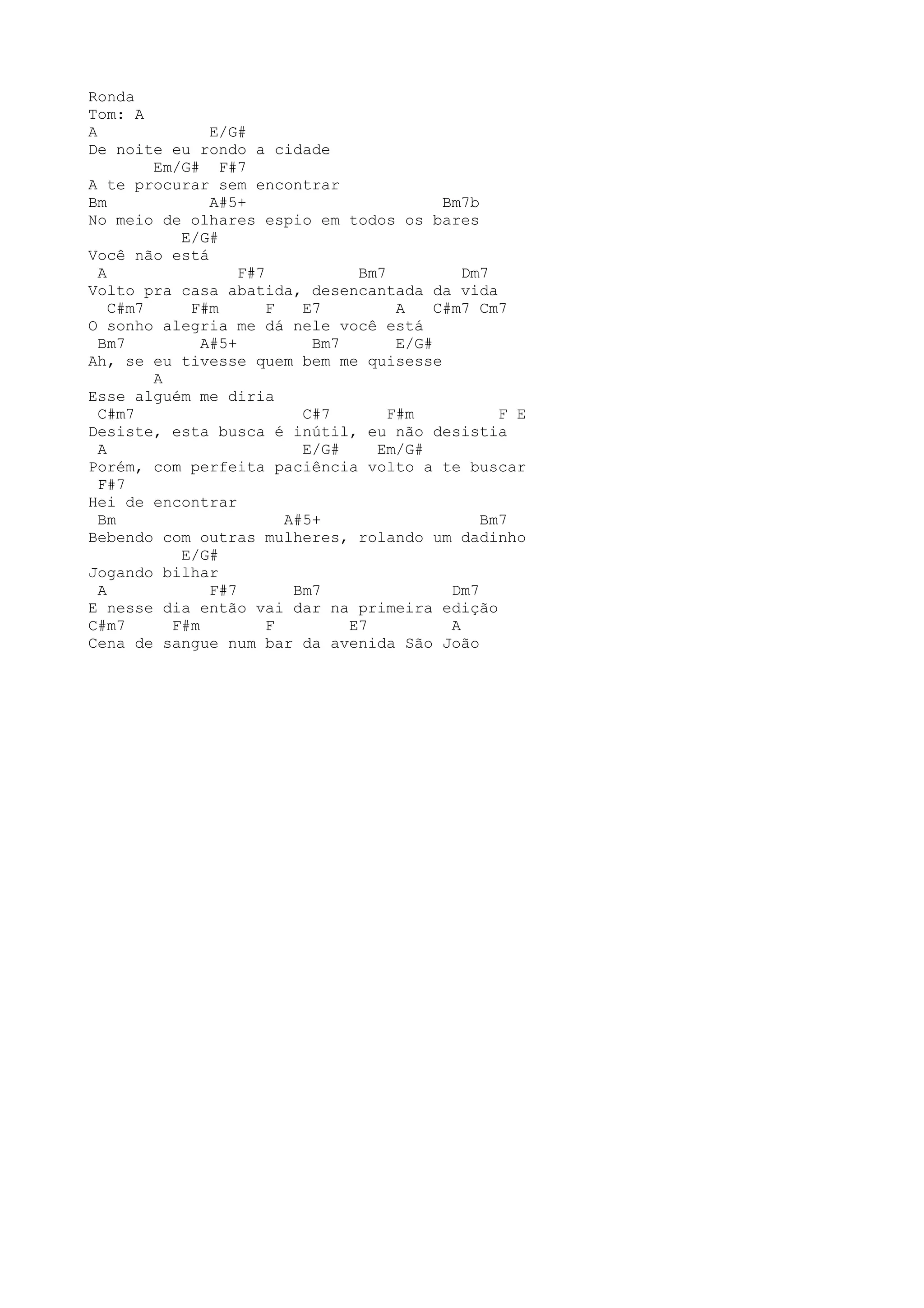 A canção descreve um homem que sai à noite para procurar sua amada em bares da cidade, mas não consegue encontrá-la. Ele volta para casa desanimado, mas sonha com ela. Apesar de alguém dizer para desistir da busca, ele continua procurando com paciência, até que um dia encontra sua amada em um bar, o que resulta em uma briga.