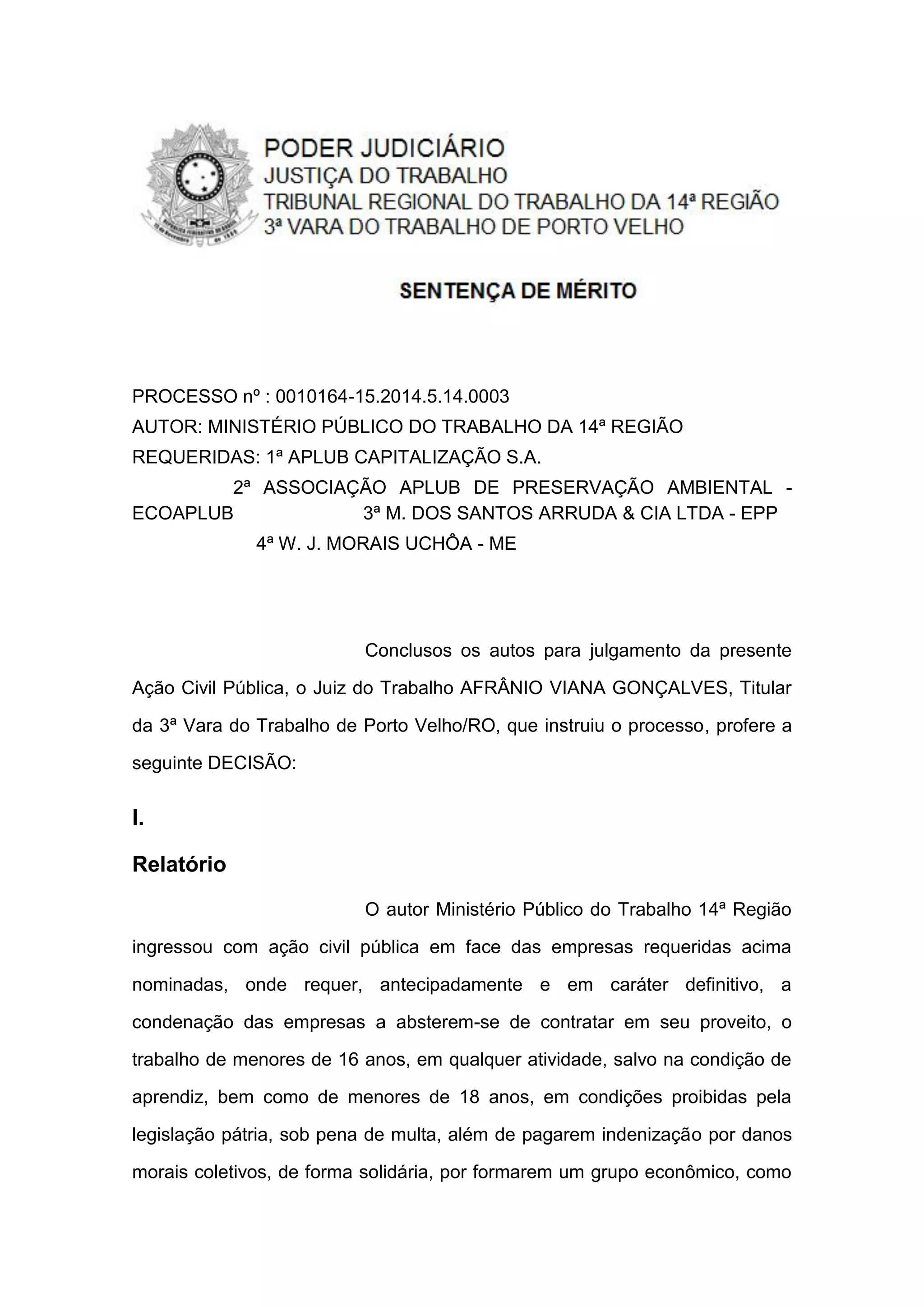 O Ministério Público do Trabalho moveu uma ação civil pública contra quatro empresas alegando que elas contrataram menores de idade para vender títulos de capitalização, violando leis trabalhistas. O juiz rejeitou preliminares levantadas pelas empresas, reconheceu que elas formam um grupo econômico e condenou solidariamente as empresas a pagarem R$ 500 mil de indenização por danos morais coletivos.
