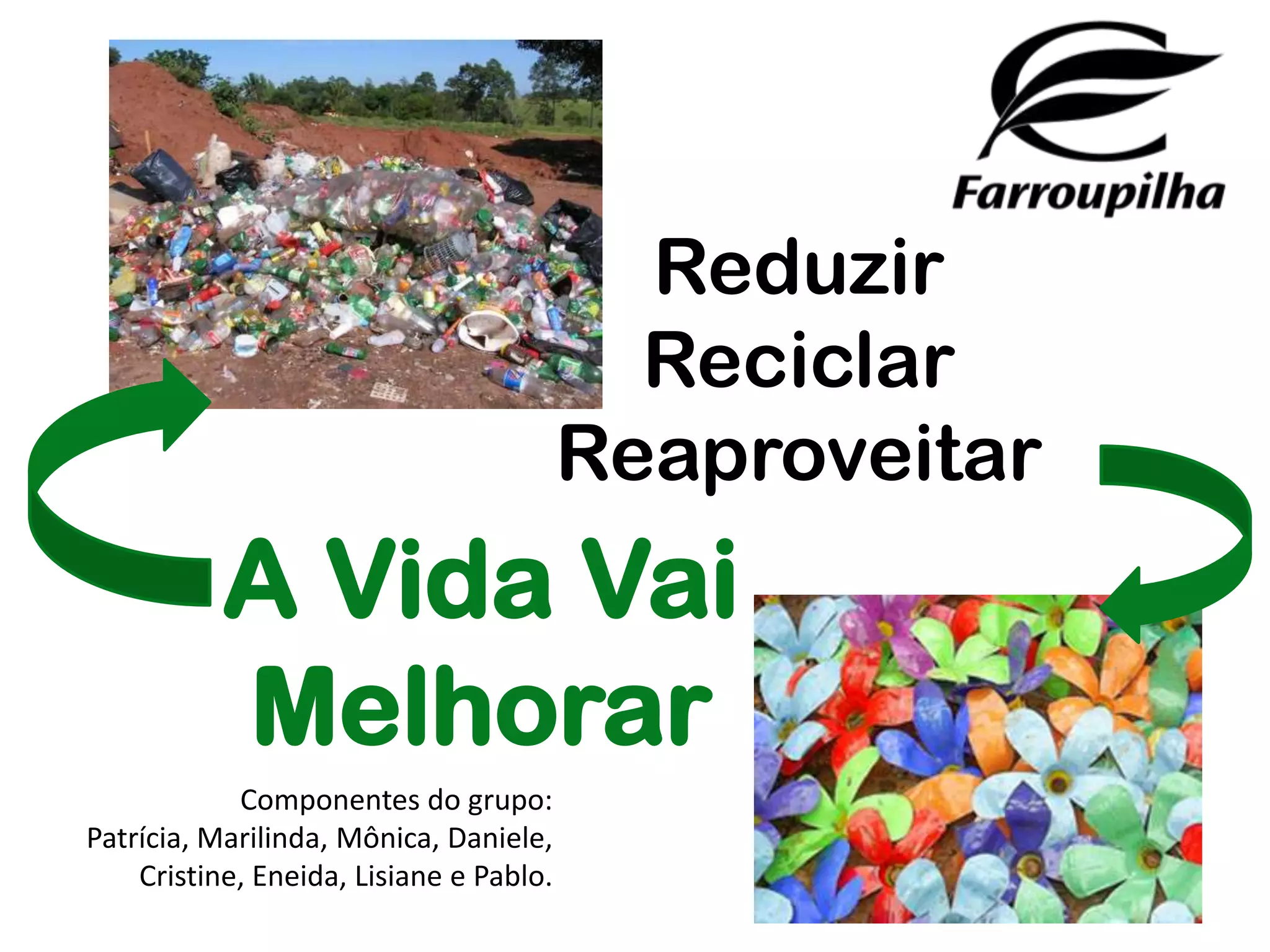 O documento descreve um projeto de conscientização ambiental desenvolvido por um grupo de alunos com o objetivo de reduzir, reciclar e reaproveitar os resíduos produzidos na escola. O projeto visa desenvolver habilidades dos alunos enquanto promove a sustentabilidade na comunidade escolar de forma permanente e contínua.