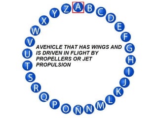 O documento descreve um jogo para alunos do 1o e 2o ano do ensino secundário onde eles devem formar palavras usando letras do alfabeto em ordem.