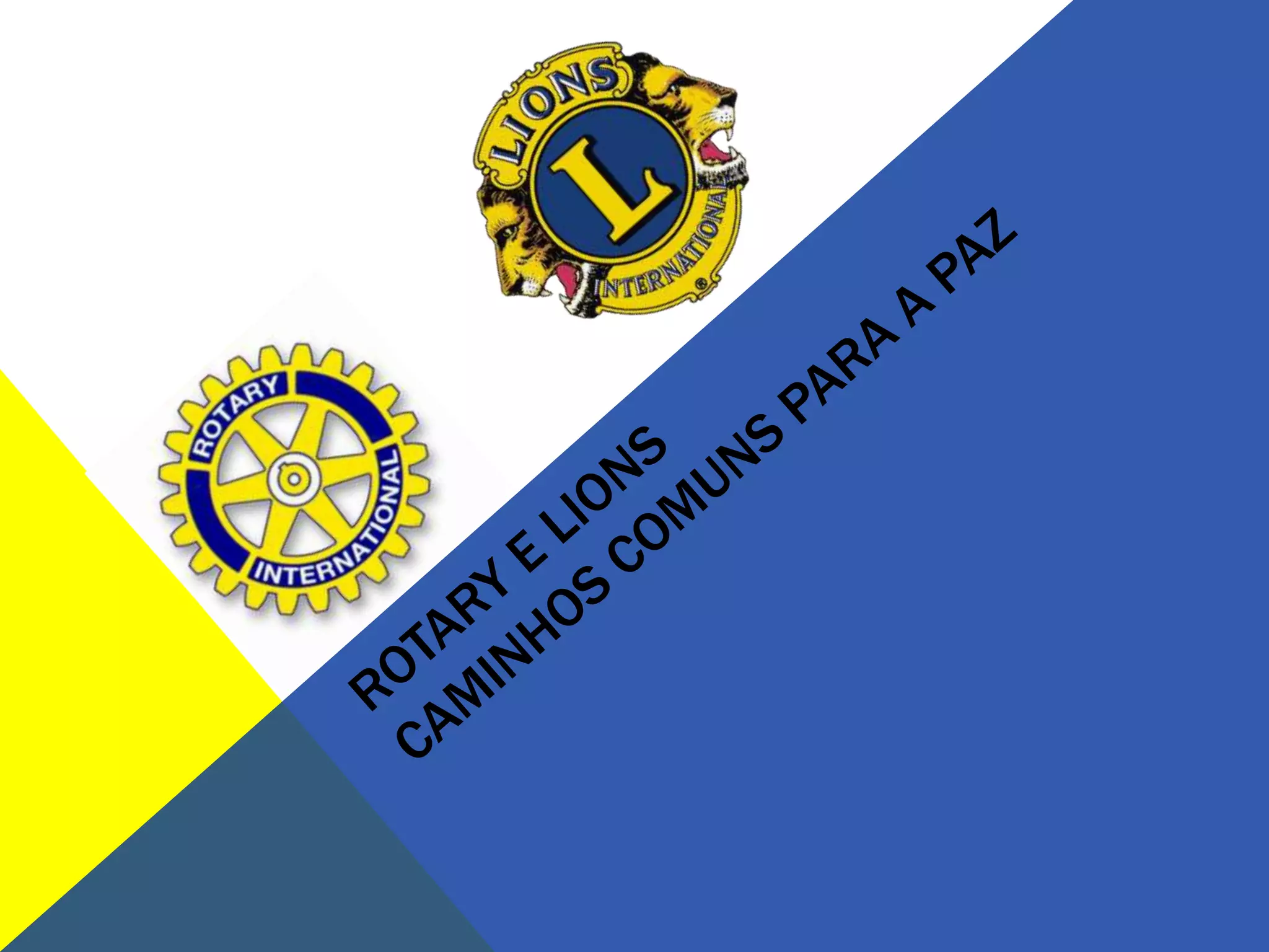 O documento discute as missões do Rotary International e Lions Internacional de servir às comunidades locais e promover a paz e compreensão mundial através do voluntariado. Ele também descreve encontros memoráveis entre líderes das duas organizações para discutir como enfrentar os desafios da sociedade e como a juventude pode contribuir para um futuro melhor.