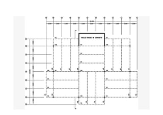 O documento descreve o dimensionamento dos elementos estruturais em aço de um edifício de 5 pavimentos, incluindo o cálculo das vigas V1 e V2, dos pilares e a seleção dos perfis de aço. As principais etapas são: 1) cálculo dos esforços nas vigas e pilares, 2) verificação do deslocamento limite, 3) determinação das forças cortantes e momentos resistentes, 4) checagem da estabilidade à flambagem. Um núcleo rígido de concreto é proposto para contra