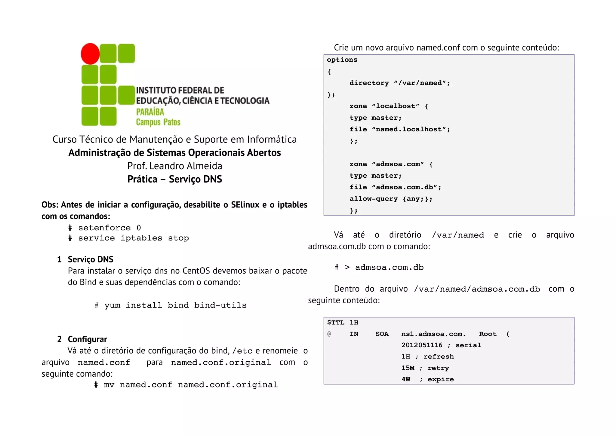Para instalar o serviço dns no CentOS devemos baixar o pacote # > admsoa.com.db