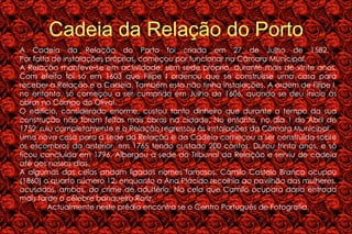 Este documento descreve vários locais históricos no Porto e em Viseu mencionados no romance "Amor de Perdição" de Camilo Castelo Branco, incluindo a antiga Cadeia da Relação do Porto, a Casa dos Brocas onde nasceu o pai do autor, e o Convento de Monchique associado à história de amor trágico do livro.